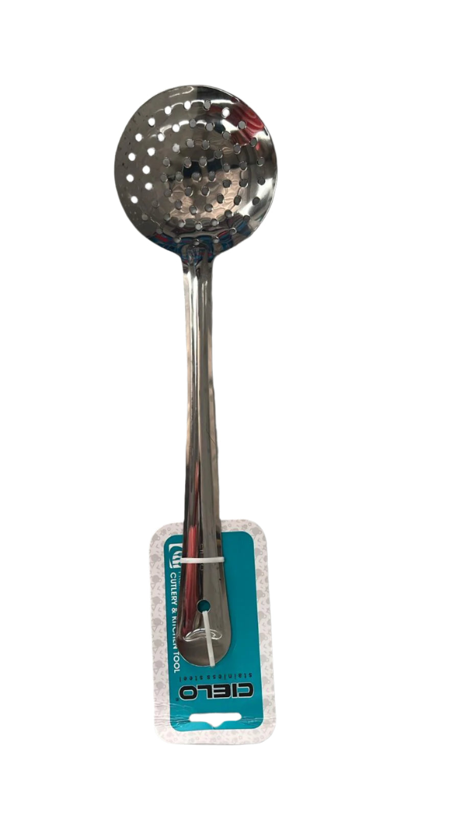Cielo Skimmer No 6 available at Tales of India. Ideal for deep frying and draining oil from snacks or curries. Durable and easy to clean.