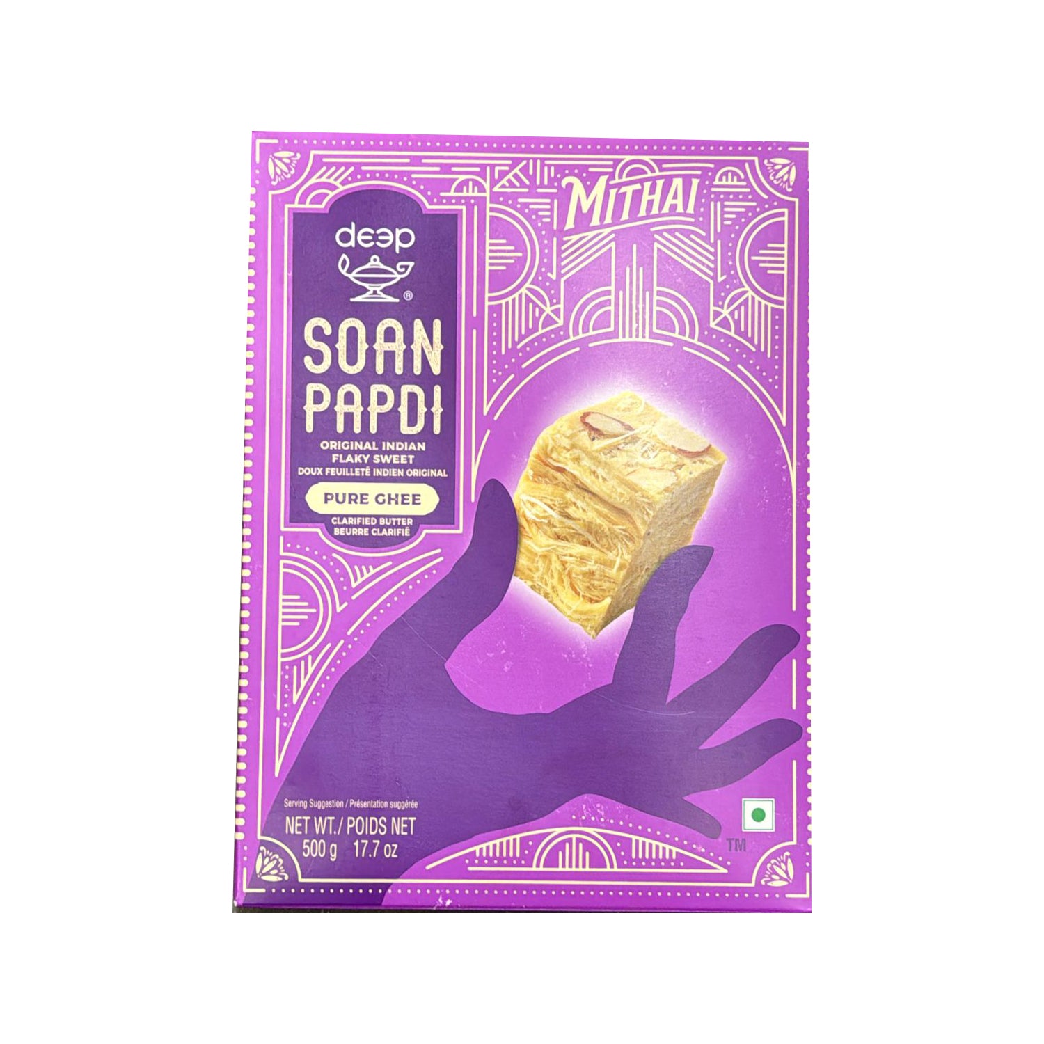 Deep Soan Papdi 500g is a popular Indian sweet known for its delicate, flaky texture and rich, melt-in-your-mouth flavor. It's a classic sweet often enjoyed during festivals and celebrations, and is made with a blend of ingredients like chickpea flour, sugar, and pure ghee. The addition of cardamom, almonds, and pistachios enhances its aromatic and nutty flavor