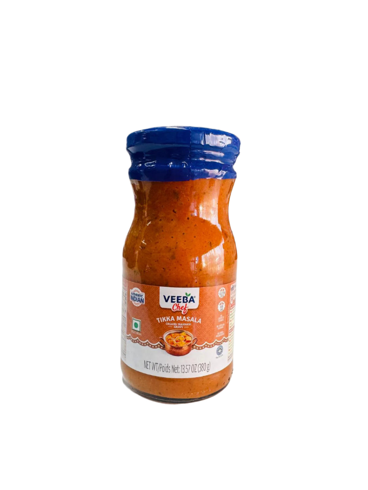 Veeba Tikka Masala Sauce 380g available at Tales of India. A rich and creamy sauce blended with spices, perfect for preparing authentic Indian tikka curries.