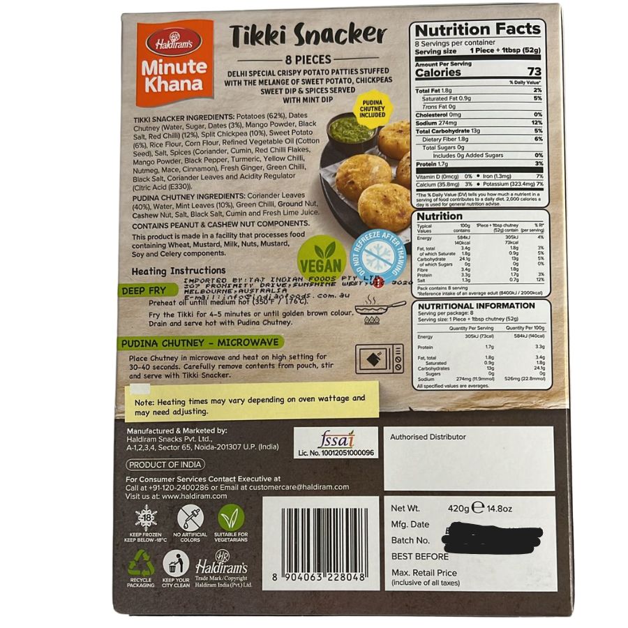 Haldiram's Tikki Snacker is a product of India brought to you by Tales Of India. Haldiram's Tikki Snacker is traditional crispy potato patty stuffed with sweet potatoes and spices. Get in touch with us for more information.