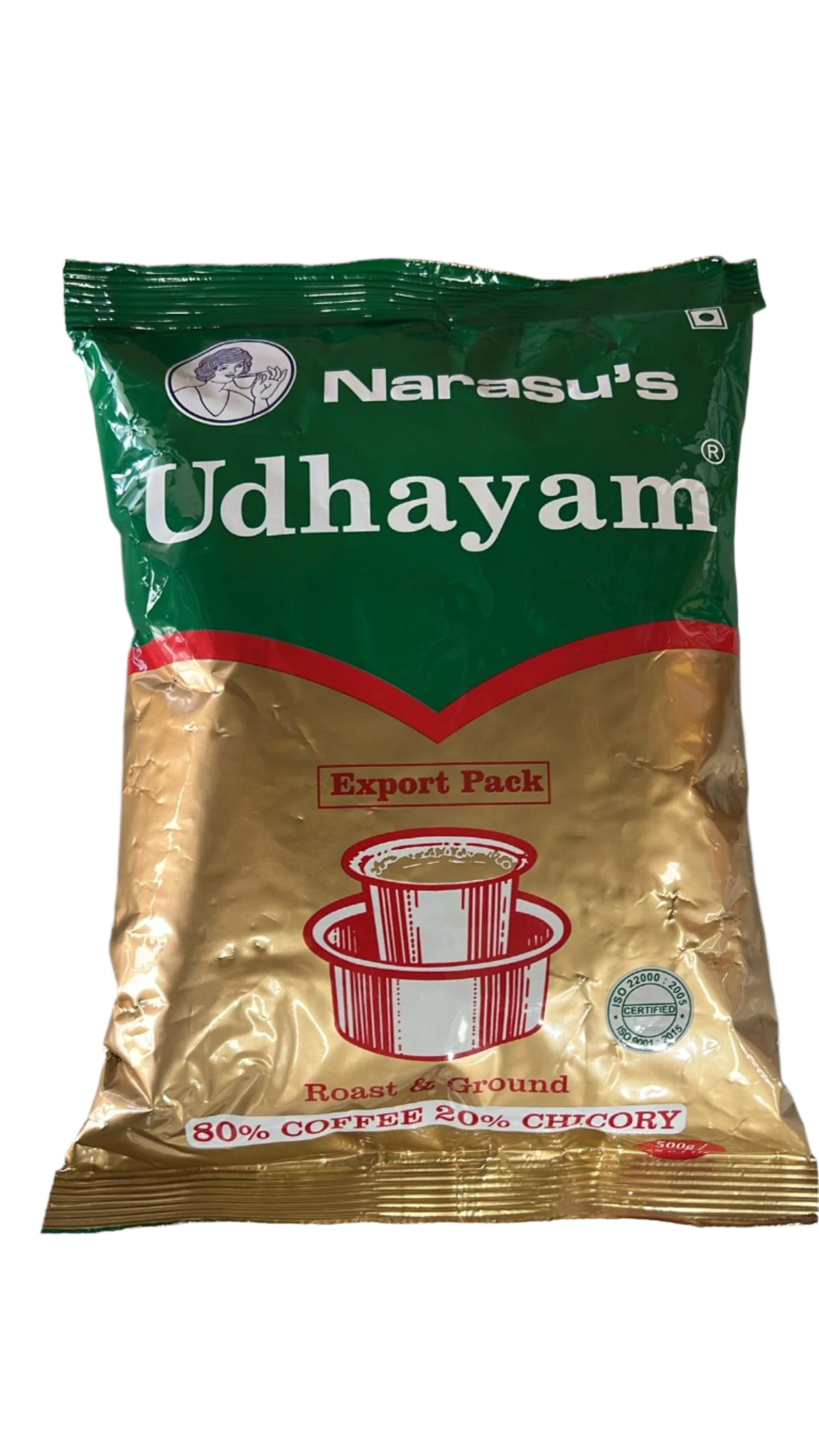 Narasu's Udhayam Roast & Ground Coffee 500g available at Tales of India. A rich and aromatic coffee blend perfect for brewing flavorful South Indian filter coffee.