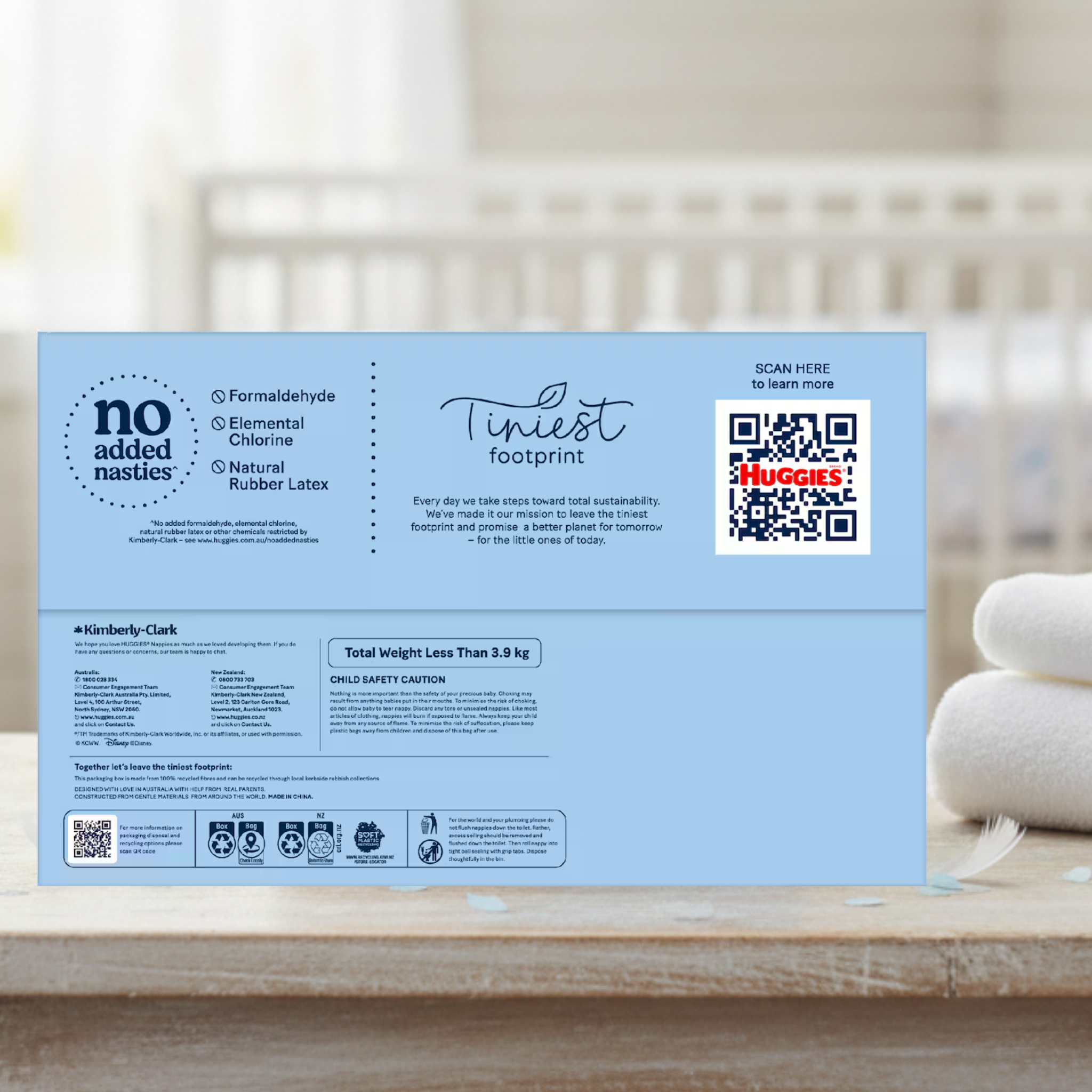 • Wetness indicator with color-change feature helps parents know when a nappy change is needed