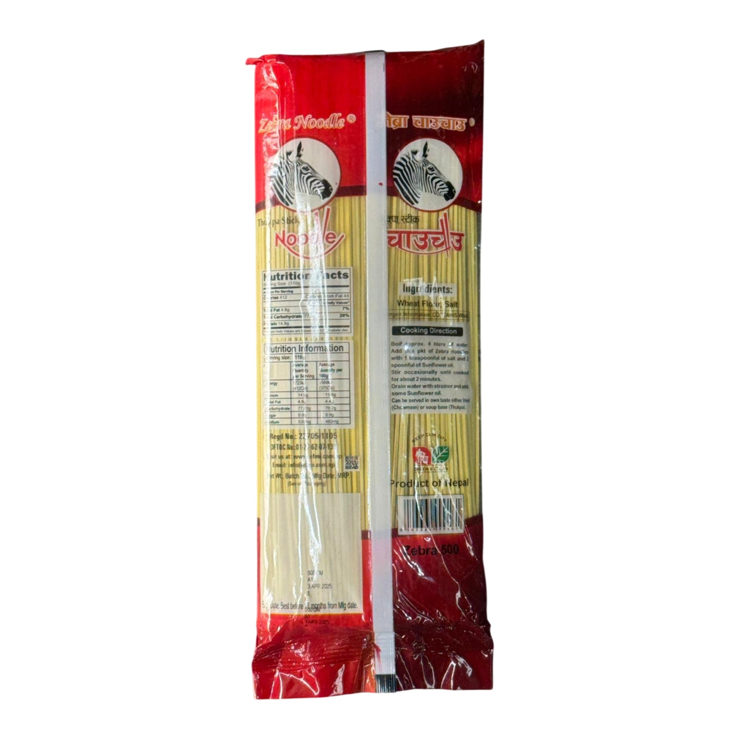 Zebra Veg Thukpa Stick Noodles (500g) are convenient, instant noodles designed for making traditional Himalayan vegetable noodle soup (Thukpa), featuring a mix of flour, oil, and salt for the sticks, often with dehydrated veggies and spices in a packet, offering a quick, hearty, and flavorful meal, typically with a base of Maida (refined flour) for a hearty bite, originating from Nepal and popular for quick, wholesome snacking or meals